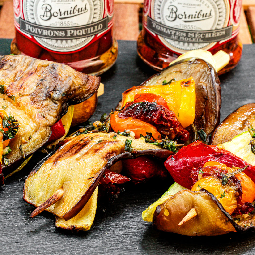 Servez les brochettes d’agneau mariné et abricot chaudes, accompagnées de la moutarde au poivre vert Bornibus pour tremper.