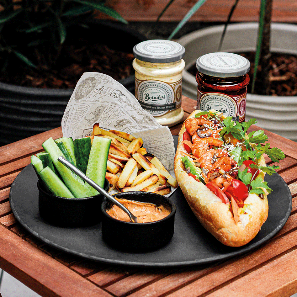 Banhmi à la mayonnaise aux baies roses et harissa brûlante