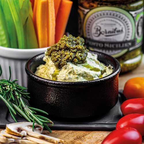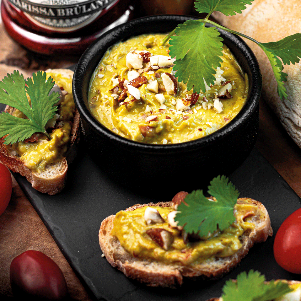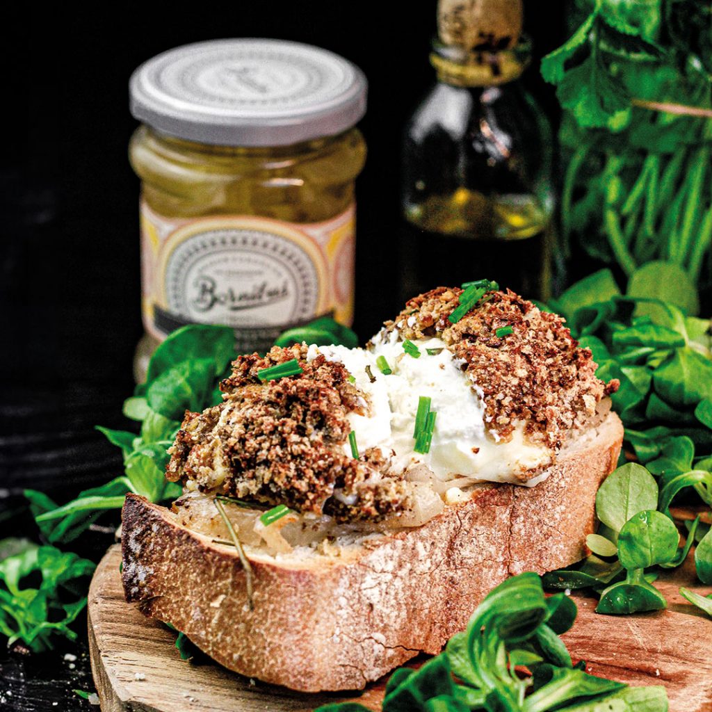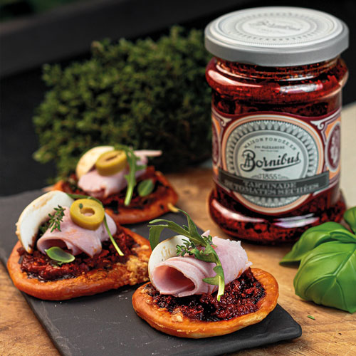 Crostini à la Tartinade d’Artichauts Bornibus, Jambon Cru & Parmesan