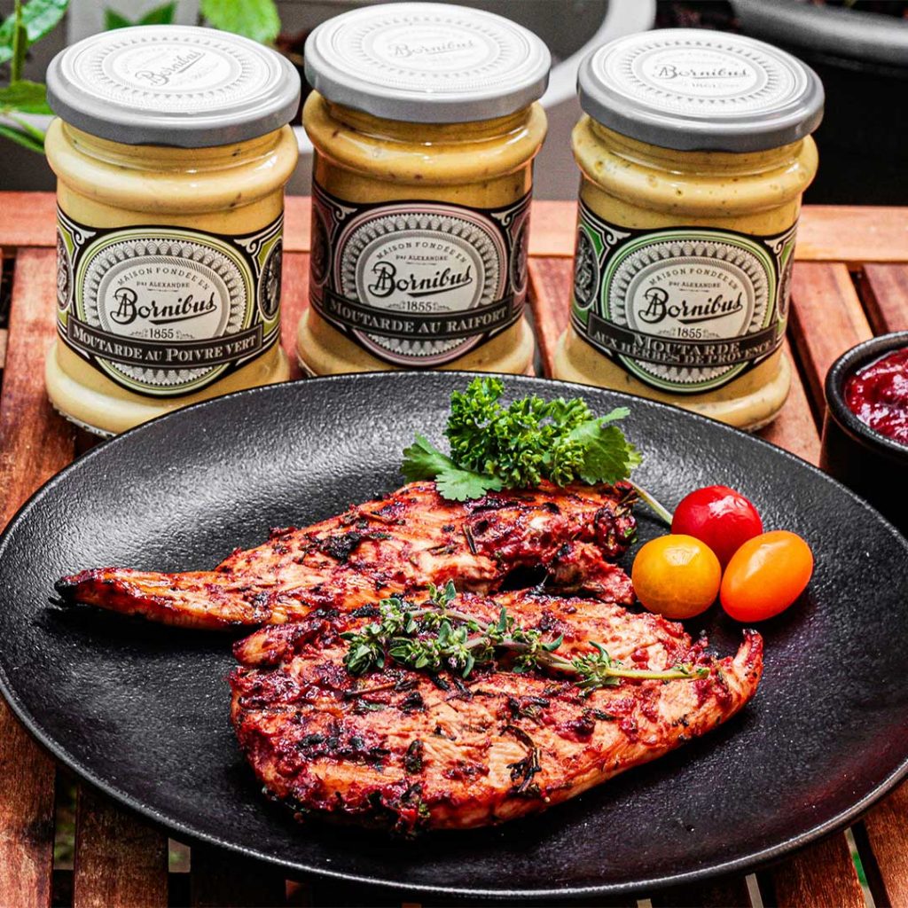 Entrecôte et pommes de terre au four à la moutarde au piment d'Espelette Bornibus