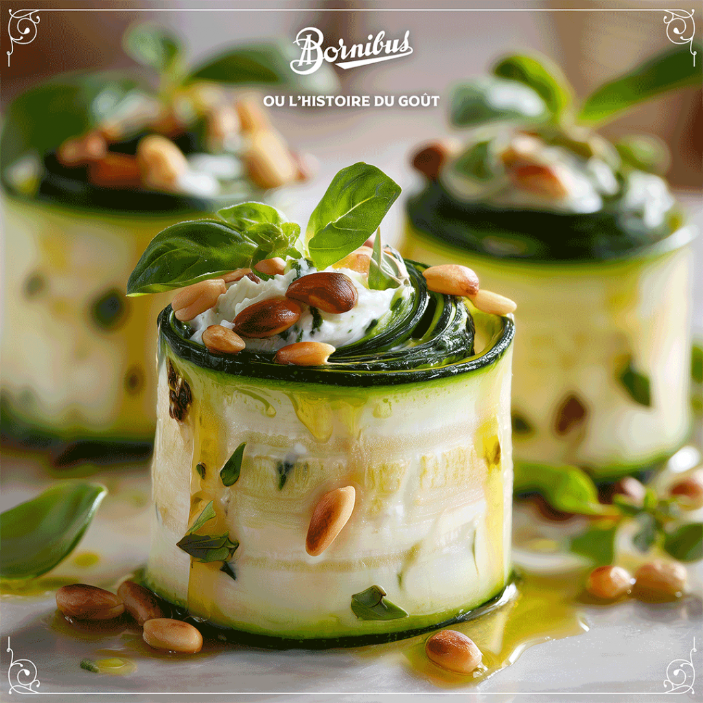 Roulés de courgette à la mayonnaise au basilic et cacahuètes