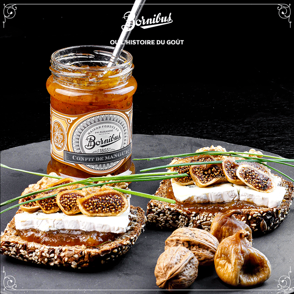 Confit de Mangues Bornibus, Fromage Bleu & Noix